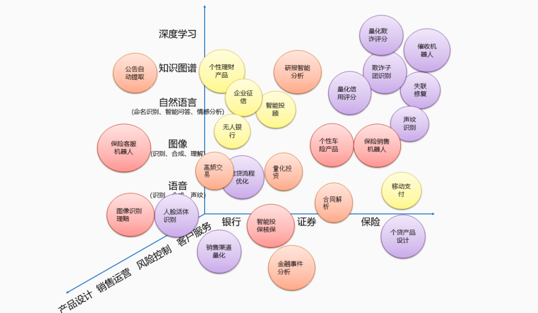 近年来,信息技术发展迅猛,云计算和大数据技术日趋成熟,应用也日益广泛。而人工智能则处于日新月异的发展之中。特别是,以深度学习为代表的人工智能联结学派,在图像识别合成、语音识别合成、自然语言理解技术均取得了重大突破,大大推进了人工智能的发展。另一方面,以大规模知识图谱为代表的人工智能符号学派,注重机器的推理能力,也在一定程度取得了进展。下面这幅图展示了人工智能在金融科技的应用,可以看出,大量金融科技创新应用主要是由于人工智能在基础技术取得了重要进展。所以,我们一定要重视基础技术、核心技术的持续研究和推动。
