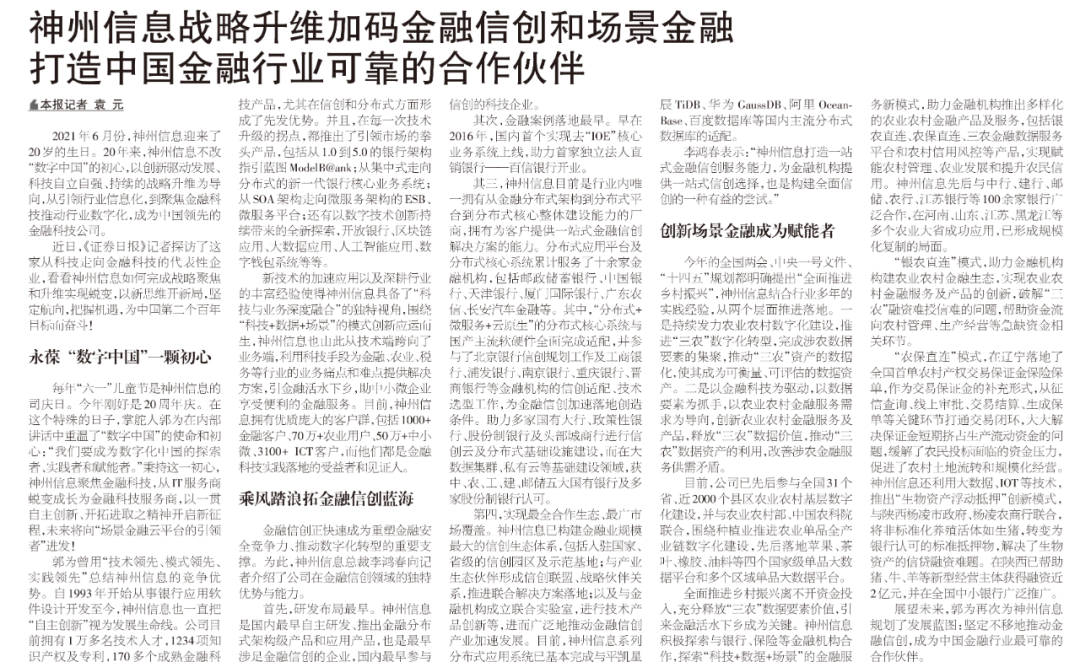 证券日报:BB贝博艾弗森官网战略升维加码金融信创和场景金融,打造中国金融行业可靠的合作伙伴