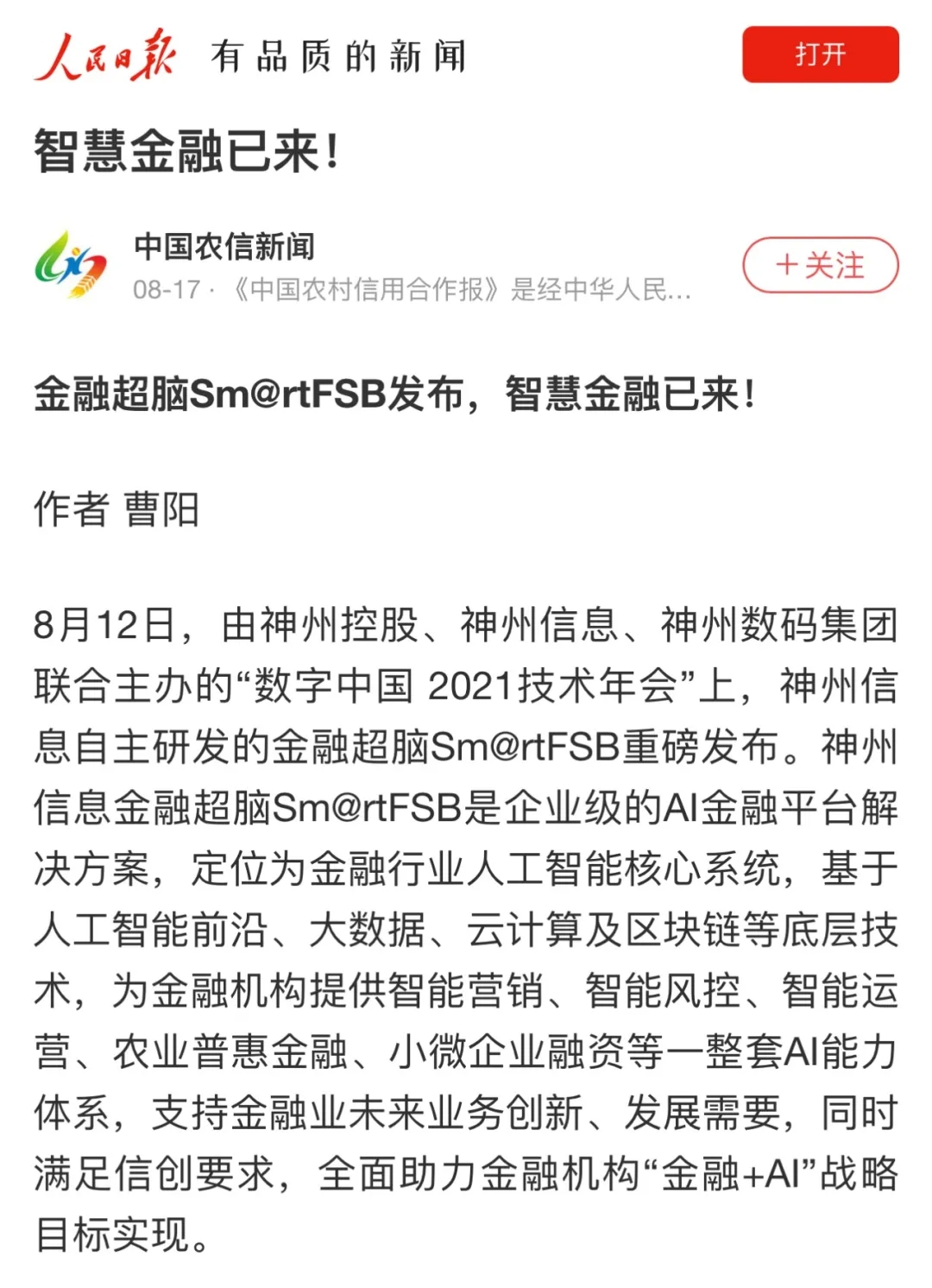 BB贝博艾弗森官网发布金融超脑Sm@rtFSB 构建金融AI核心系统